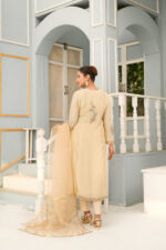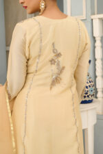 A beautiful fusion this ensemble is crafted from luxurious korean raw silk for both shirt and pants, offering a refined and polished look paired with a chifoon dupata with embroidery